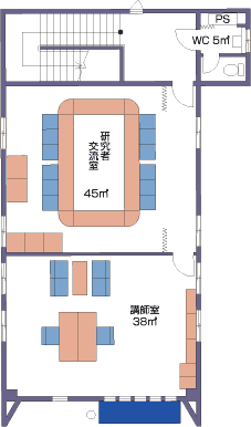 2階部分は、研究者交流室(会議室)と講師室があります。韓国関係書籍・ビデオなどが常備されており、韓国からの訪問研究員等の研究室や韓国研究等のための各種会議の開催に活用できます。 講師室は、九州大学に訪問研究員として在籍している韓国人研究者の研究室として使用することにしており、学内公募を行って利用者の調整を行っています。