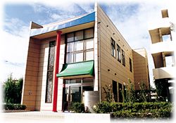この建物は、鉄骨造(プレハブ)2階建てで建物面積 108.54平方メートル、延べ面積 217.08平方メートルです。建物のイメージとしては、韓国旗を象徴する赤や青など韓国的な色使いで外装を施し、さらに、韓国の伝統的な文様を表現した窓格子等を取り入れたデザインとしています。