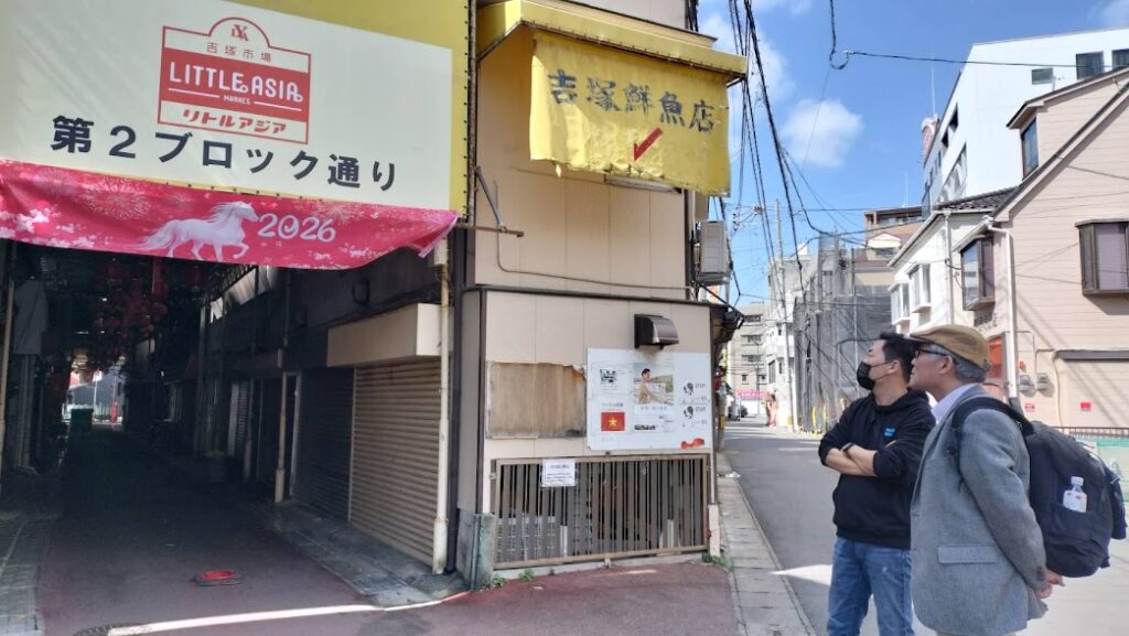 また翌日22日(日)は、エクスカーションとして、福岡市吉塚アジアマーケットにおける外国人共生の取り組みの視察を行いました。